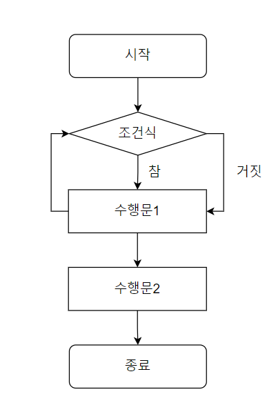 조건식이 참인 동안 수행문을 반복해서 실행한다.